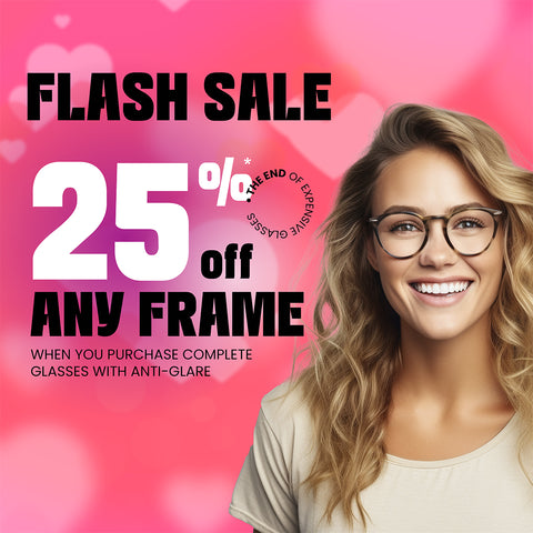 Get 25 % off any frame when you purchase lenses with anti-glare